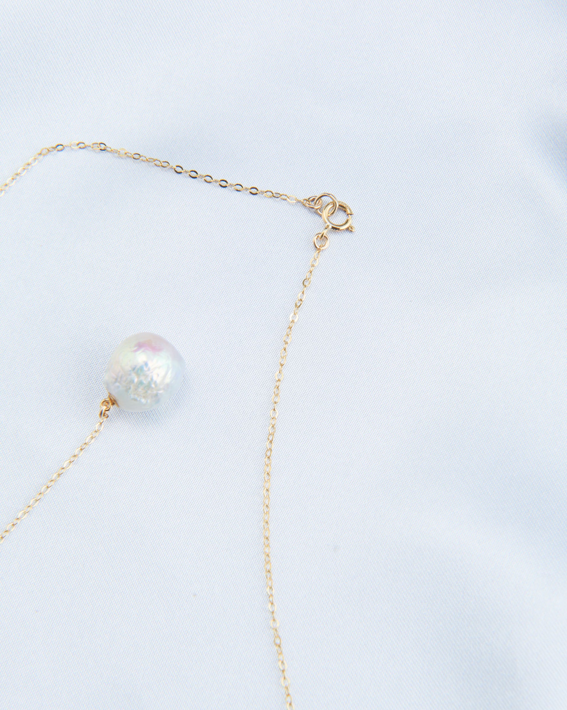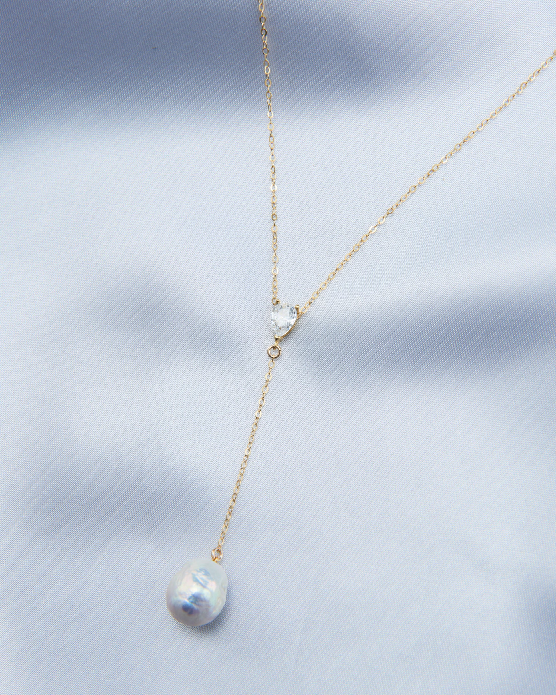A softly luminous baroque pearl rests at the center of this delicate design — suspended from a sparkling zircon-studded chain, and crafted with care using 14K gold-filled and gold-plated silver. Each piece is thoughtfully designed to celebrate quiet individuality and natural elegance.