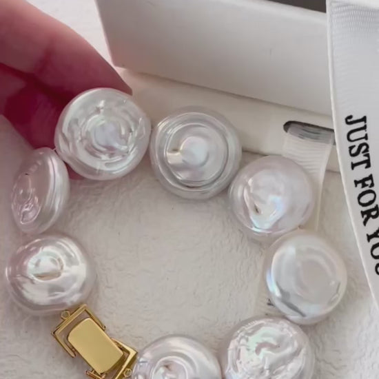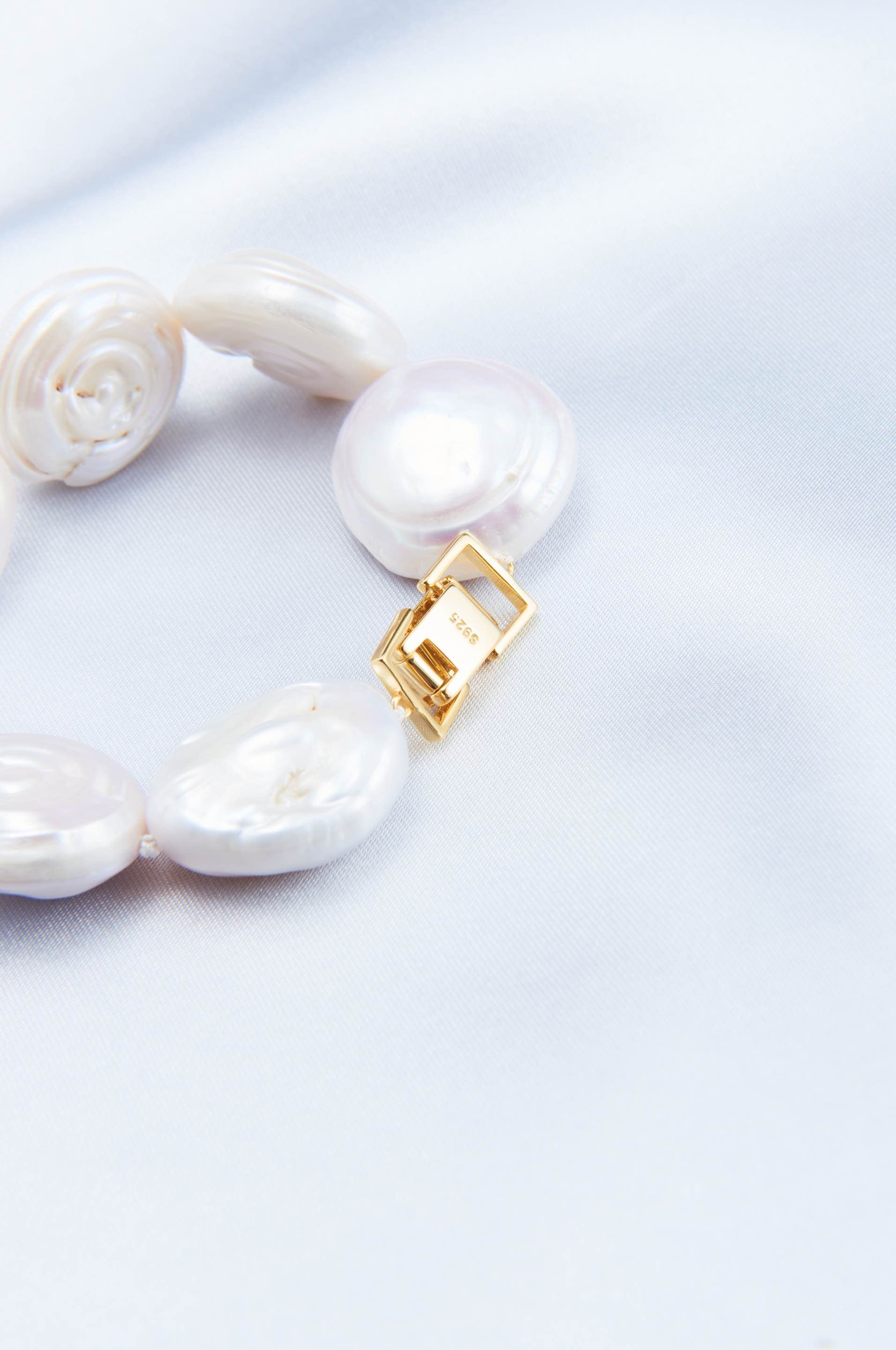 Inspired by timeless Roman romance, this bracelet features a unique baroque pearl accent set on a fully 18K gold-plated sterling silver band. Designed for elegance and comfort, available in two sizes for a perfect fit.